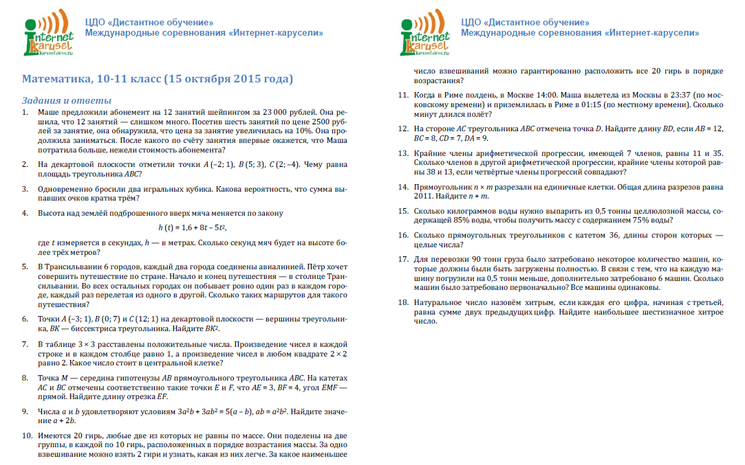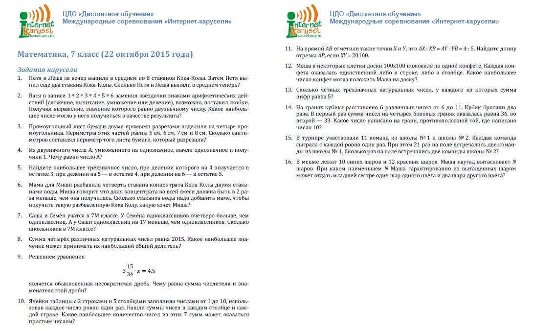 - Математические карусели в рамках карусель-кружка "Математика 5-6"